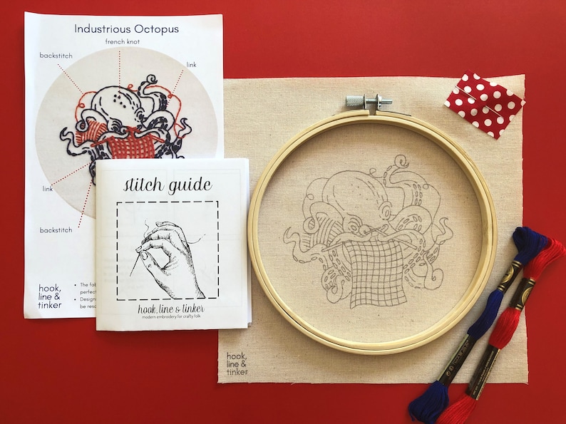 Hook, Line & Tinker offers modern and fun embroidery kits. This octo-knitter comes with all materials and instructions you need.